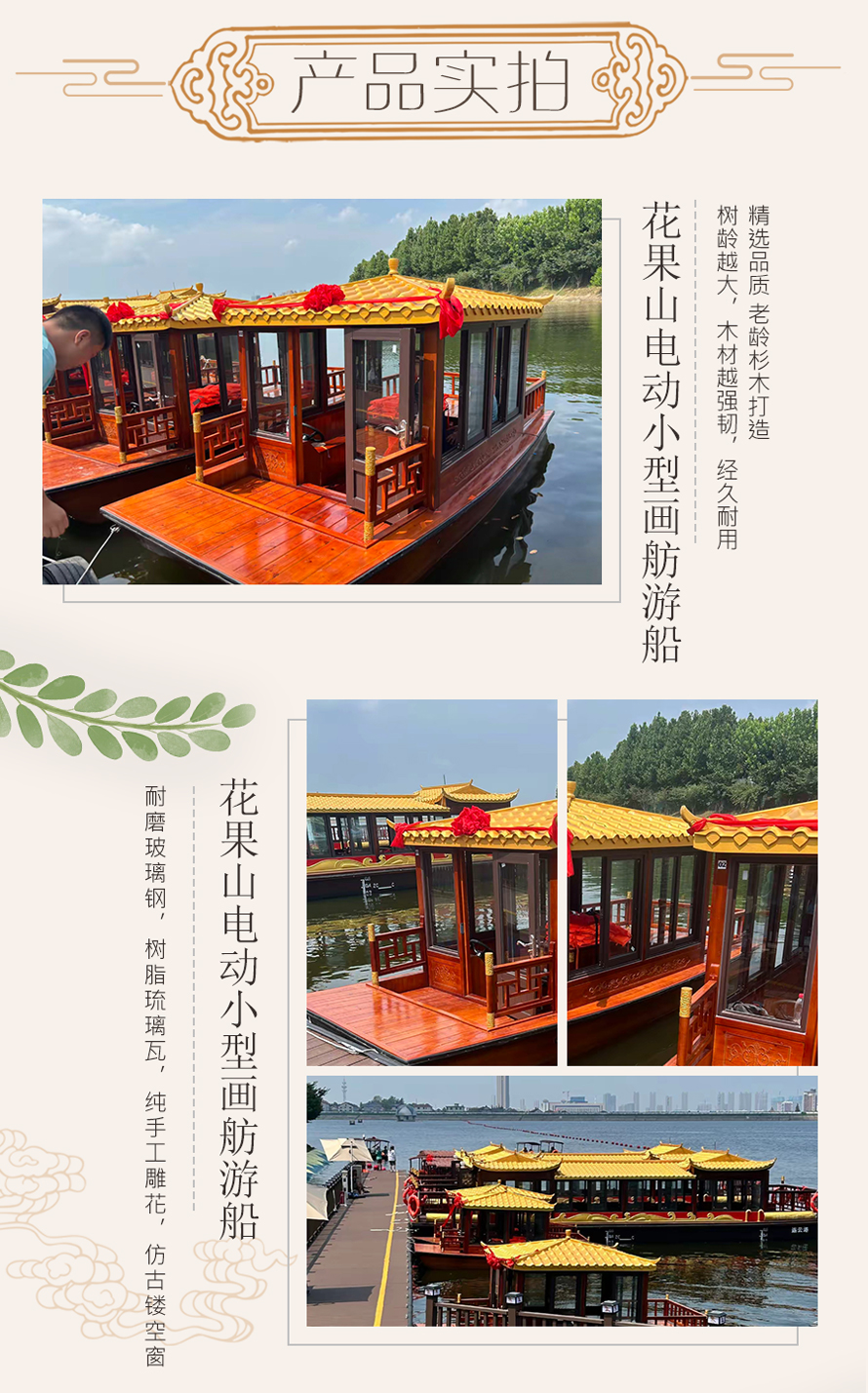 木船仿古5米电动小型画舫船景区观光旅游船接待客船