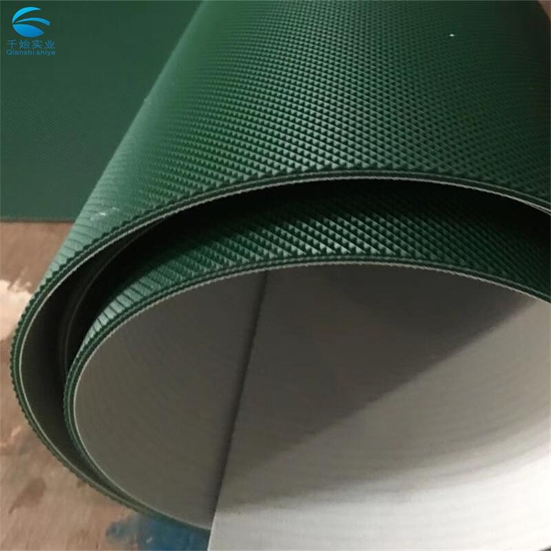 供应绿色/黑色/白色钻石花纹pvc输送带,钻石纹花纹爬坡带,防滑PVC输送带简介:钻石花纹输送带,厚度3毫米,绿色和白色蓝色三种颜色 二布二胶。