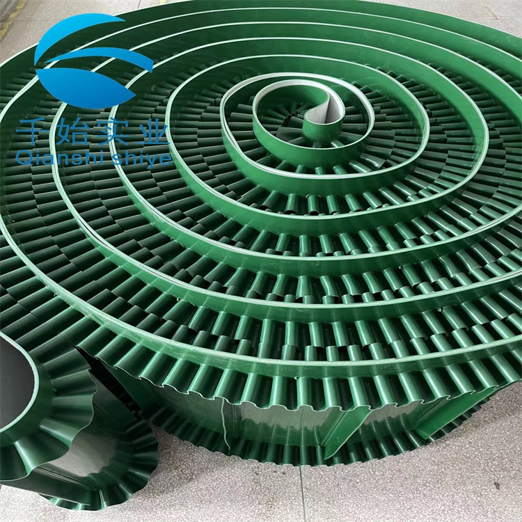 绿色加隔板pvc输送带 pvc裙边挡板提升输送带分为:有裙边无隔板输送带和有裙边有隔板输送带两种。能使各种散装物料以0-90度作任意倾角连续输送、绿色加隔板pvc输送带具有输送倾角大、使用范围广、占地面积小。减少土建投资、维护费用低、输送量大等特点,解决了普通输送带或花纹输送带所不能达到的输送角度。波状挡边输送带可根据要求设计成一套完整输送系统,避免了间断输送和复杂输送的提升系统。