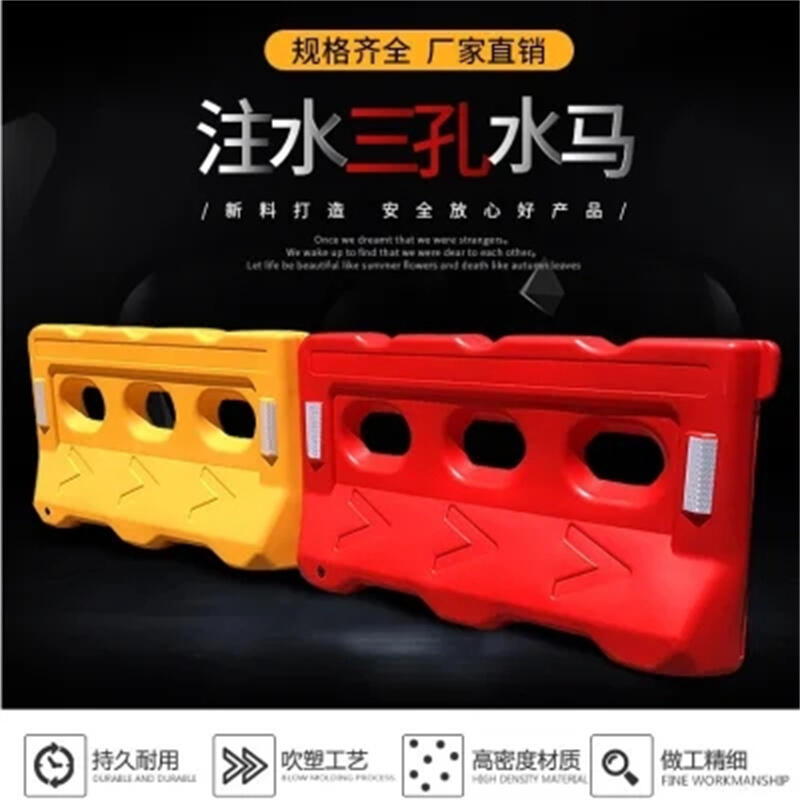 1、水马中空灌水,具有缓冲弹性,能有效吸收强大撞击力,降低交通事故;组合使用,整体承受力更强,更加稳固
