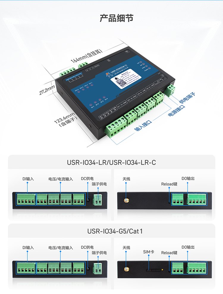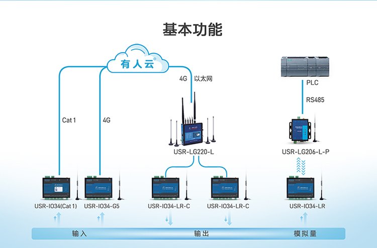 4G/cat1/LoRa网络继电器IO控制器4入4出4模拟量 品牌 | 有人 | ||