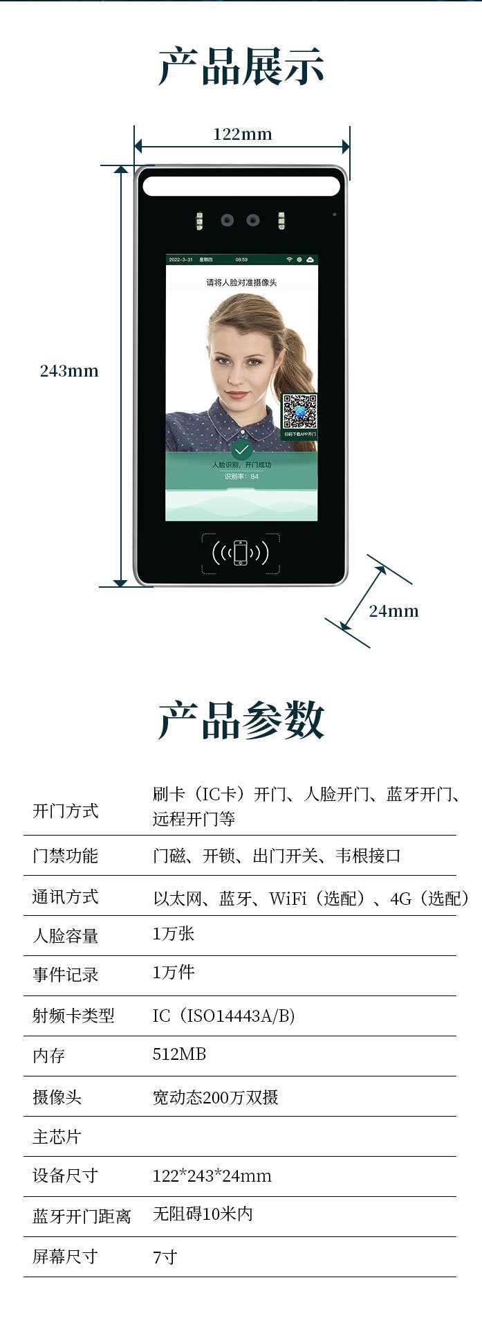 功能 | 人脸识别、蓝牙、远程、刷卡开门 | ||
