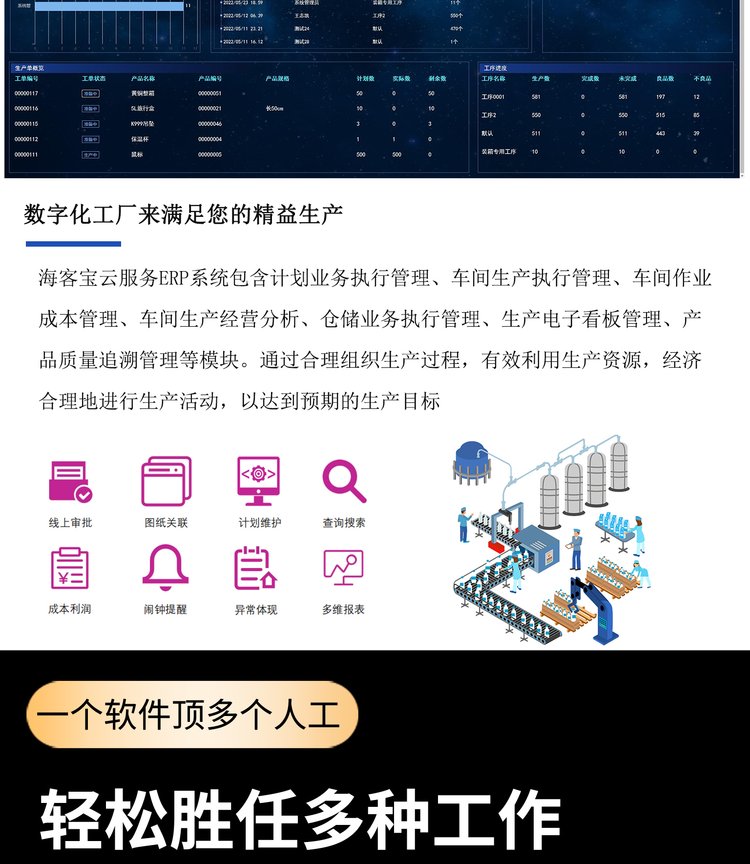 海客宝云ERP工业生产加工厂制造业MES生产管理物料管控软件