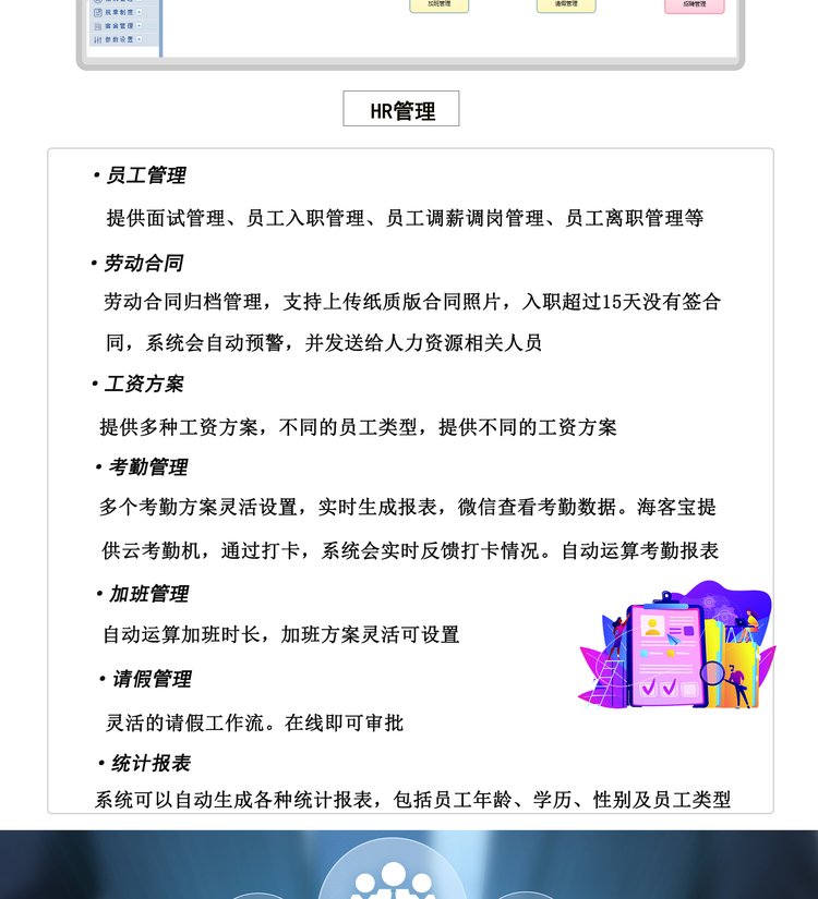 海客宝云ERP系统企业客户关系CRM人力资源HR员工薪酬考勤管理软件