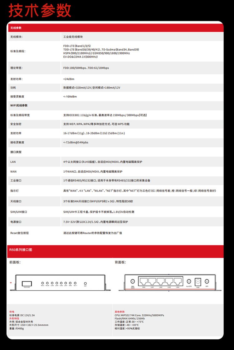 端口结构4个以太?接?(RJ45插座) 1个WAN?/1个通信RS485/RS232接?