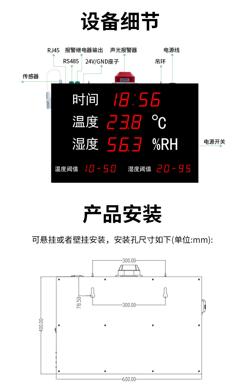工业级温湿度看板显示屏 实时监测屏对接485/RJ45数据获取可定制 是否支持加工定制 | 是 | ||