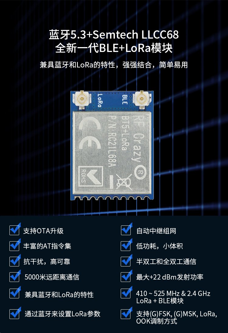 LoRa模块LoRa蓝牙二合一通过BLE设置lora参数智汉科技RFCrazy