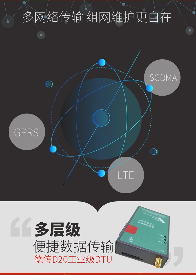 德传高性能低功耗工业无线4G DTU两个串口RS232/485数据采集终端 品牌 | 德传技术 | ||