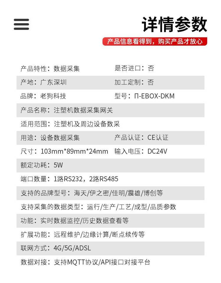支持采集的数据类型运行/生产/工艺/成型/品质参数