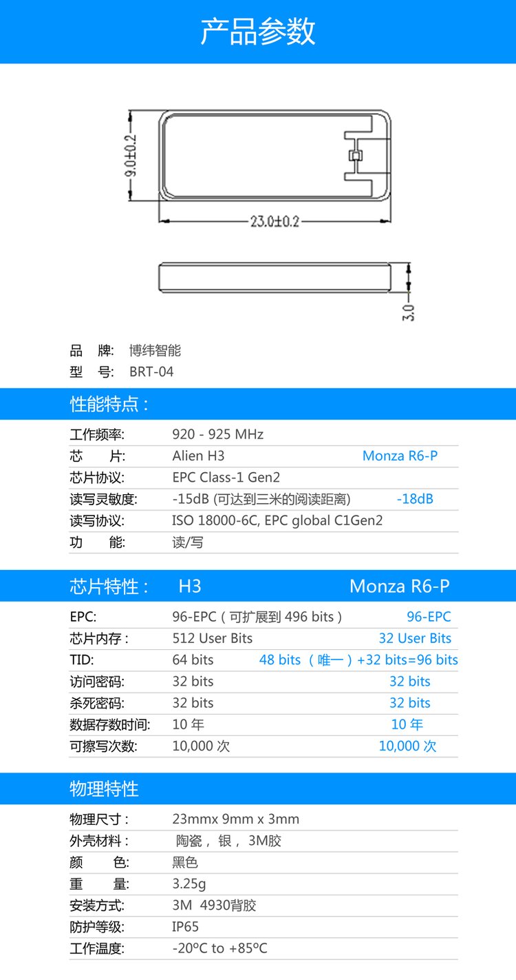 读写灵敏度 | -15dB (可达到三米的阅读距离) | ||