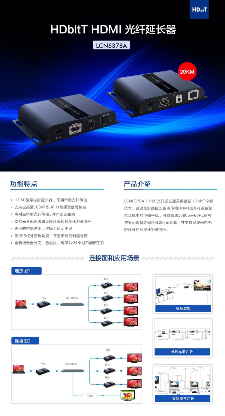 朗强 HDMI转光纤可融网传输40公里一对多 HDMI光纤收发器