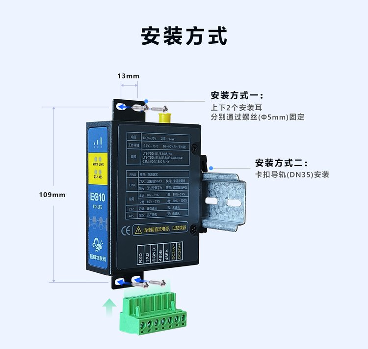 电源接口 | 宽电源输入(DC 9~30V),内置电源反相保护和过压过流保护。 | ||