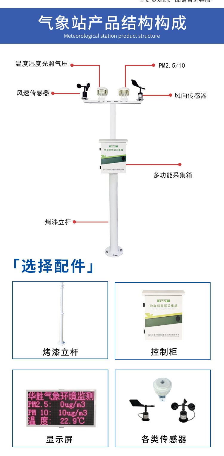 市电款物联网气象监测站风速向雨量温湿度光照气压等农业气候环境