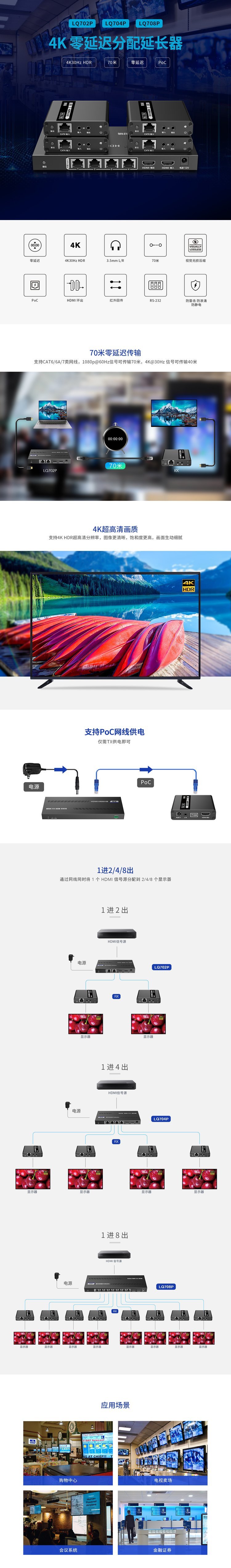 朗强1进2出HDMI网线延长分配器网线70米 4K30Hz 单电源 无延迟 LQ702P