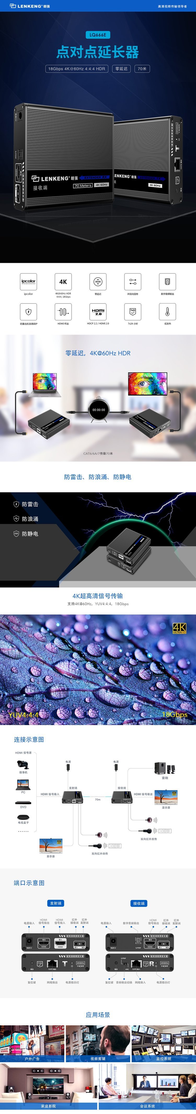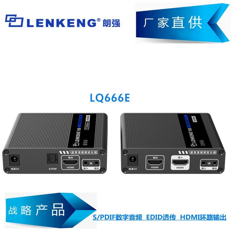 朗强LQ666P网线延长器4K超高清无损传输,S/PDIF数字音频,HDMI本地环出,双红外回传,单端供电