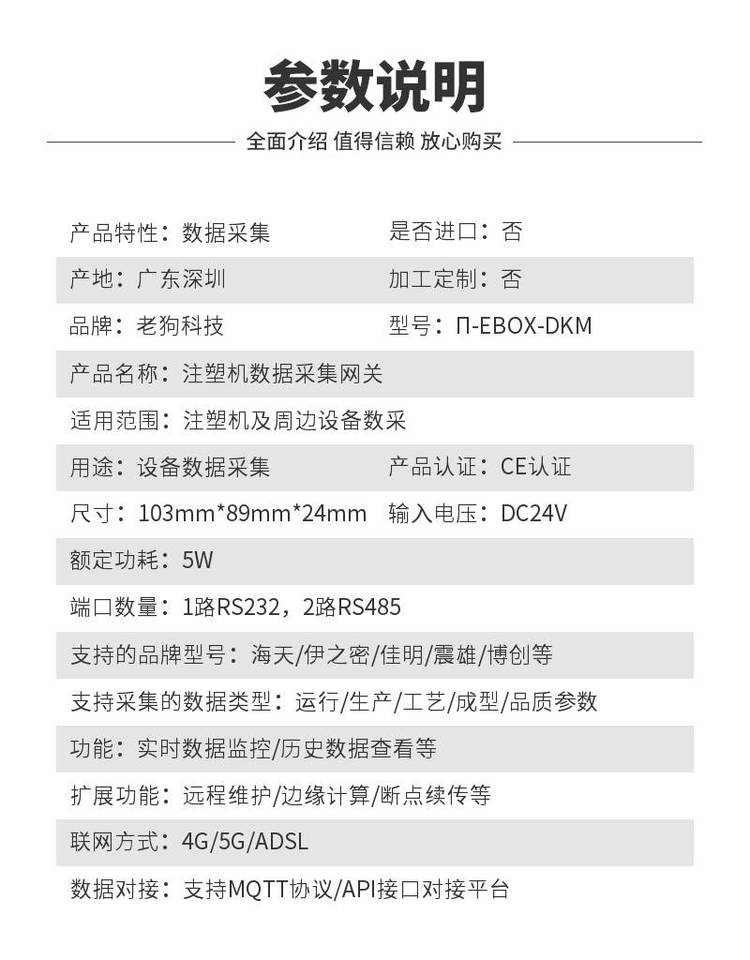 支持的品牌型号海天/伊之密/佳明/震雄/博创等