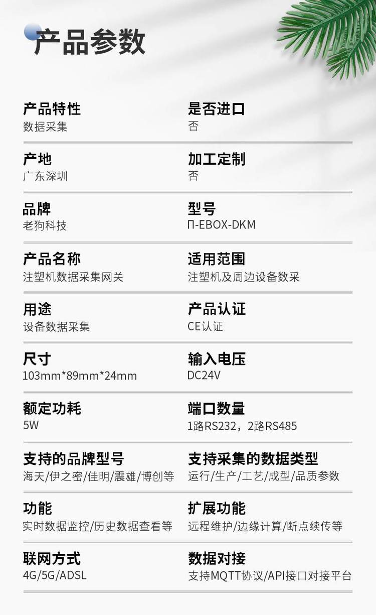 支持采集的数据类型 | 运行/生产/工艺/成型/品质参数 | ||