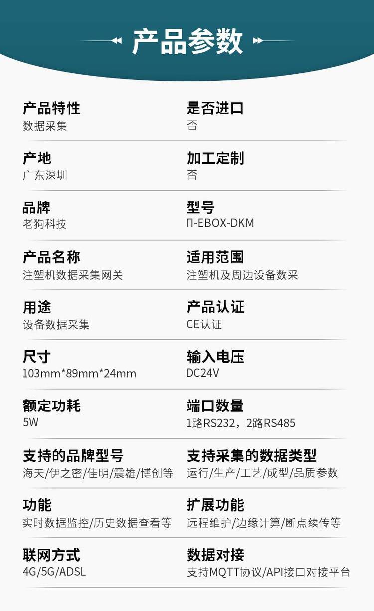 支持采集的数据类型运行/生产/工艺/成型/品质参数
