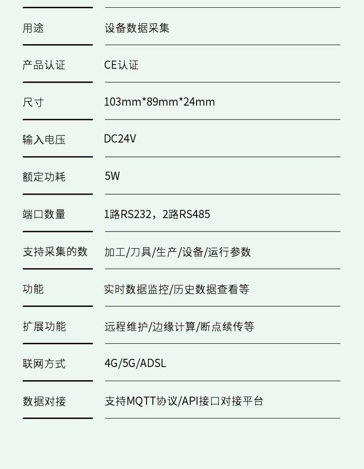 支持采集的数据类型加工/刀具/生产/设备/运行参数