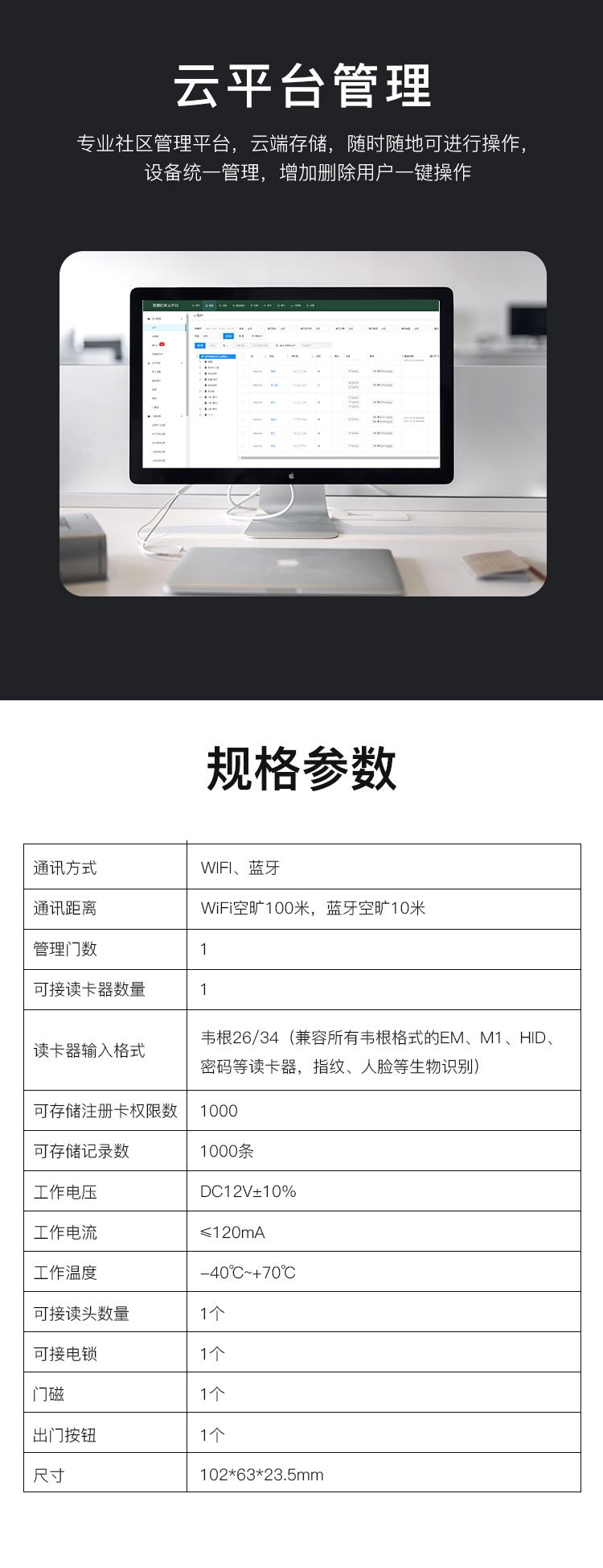 读卡器输入类型 | 韦根26/34(兼容所有韦根格式的EM、M1、HID、密码登读卡器,指纹、人脸等生物识别) | ||