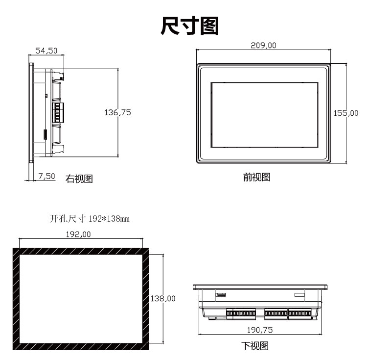 开孔尺寸 | 192×138 (mm) | ||