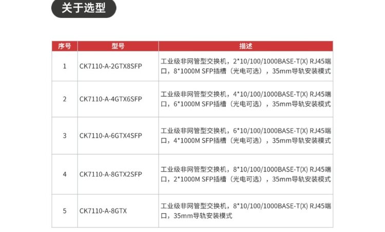 型号 | CK7110-8GTX/CK7110-8GTX2SFP/CK7110-6GTX4SFP/CK7110-4GTX6SFP /CK7110-2GTX8SFP |