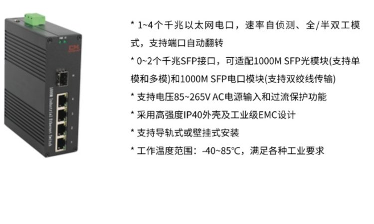 特点 | 1~4个千兆以太网电口,速率自侦测、全/半双工模式,MDI/MDI-X自适应 | ||