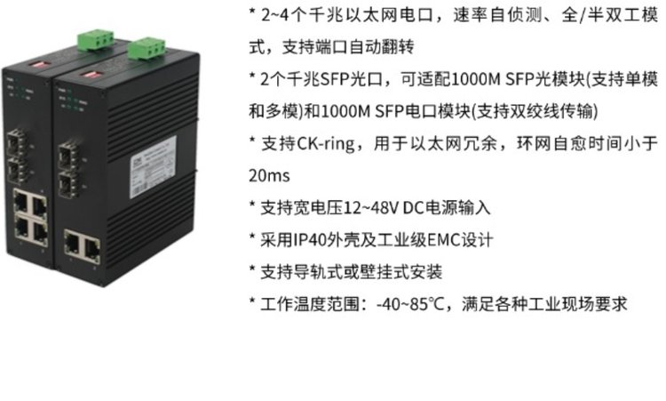 特点 | 2~4个千兆以太网电口,速率自侦测、全/半双工模式,MDI/MDI-X自适应 | ||