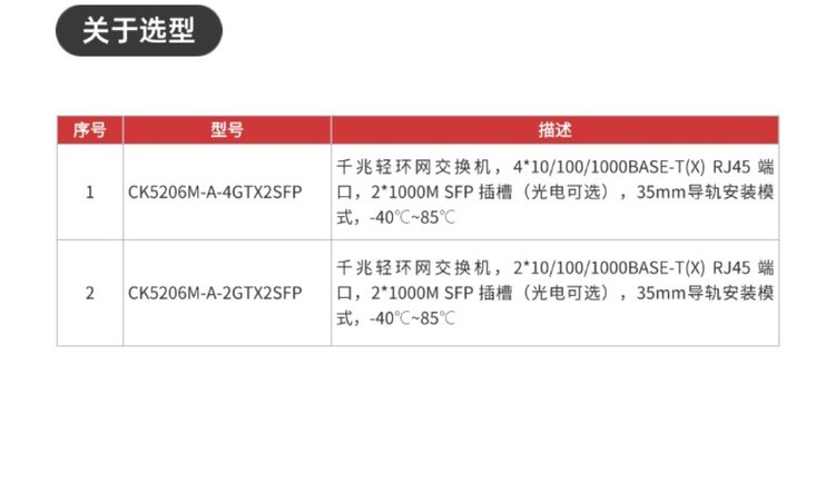 型号 | CK5206M-4GTX2SFP/CK5206M-2GTX2SFP |