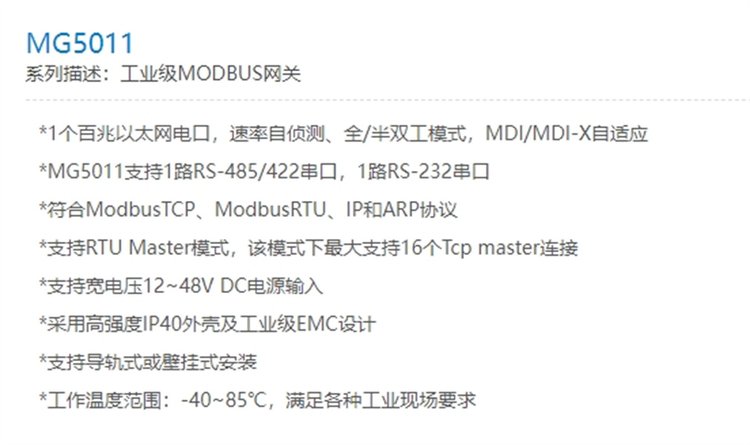 MG5011工业级MODBUS网关支持宽电压12~48VDC电源输入