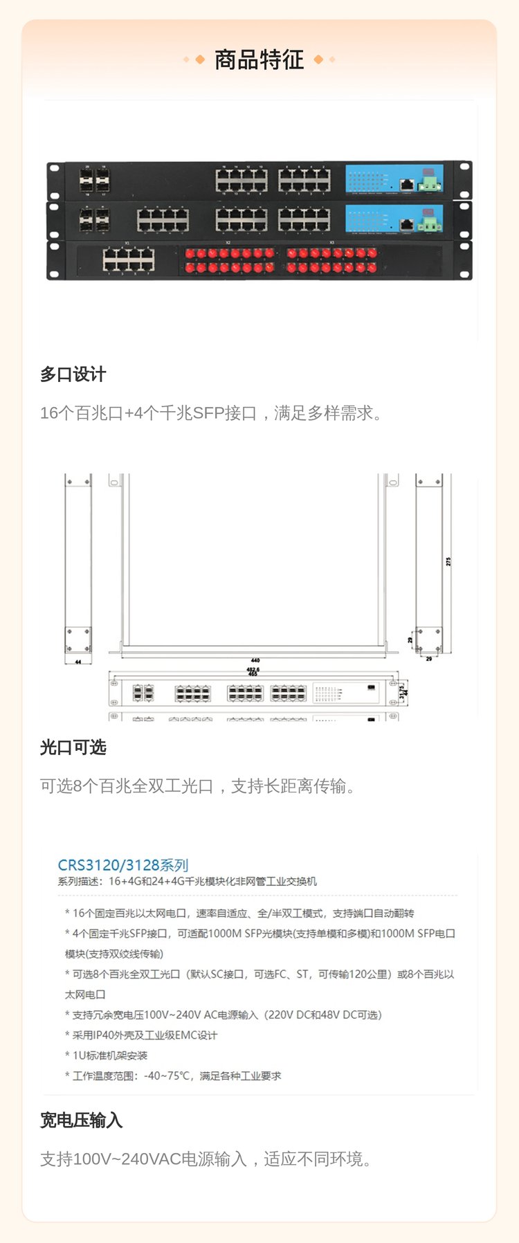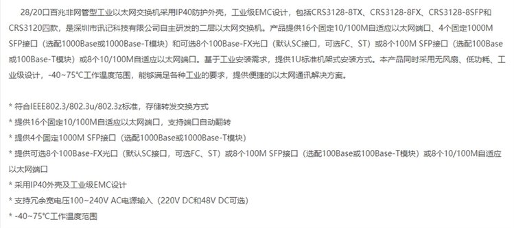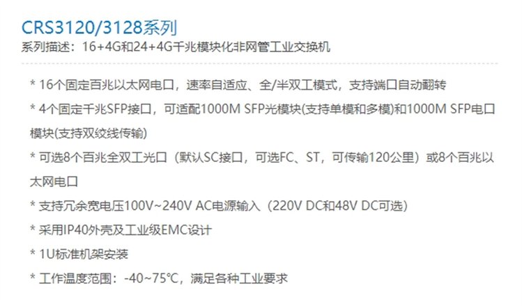 CRS3120/3128系列 16 4G和24 4G千兆模块化非网管工业交换机 产品 | 光纤交换机、串口服务器 | ||