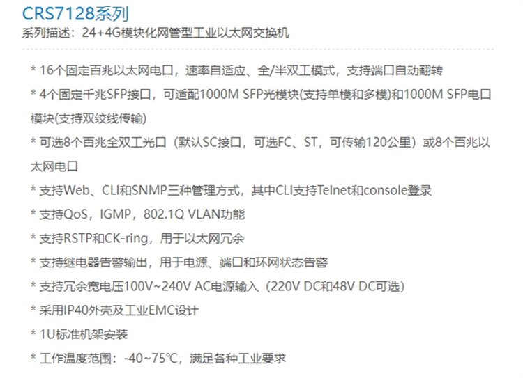 RS7128系列24 4G模块化网管型工业以太网交换机