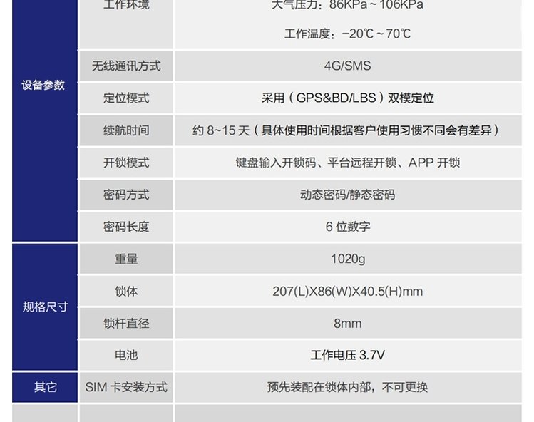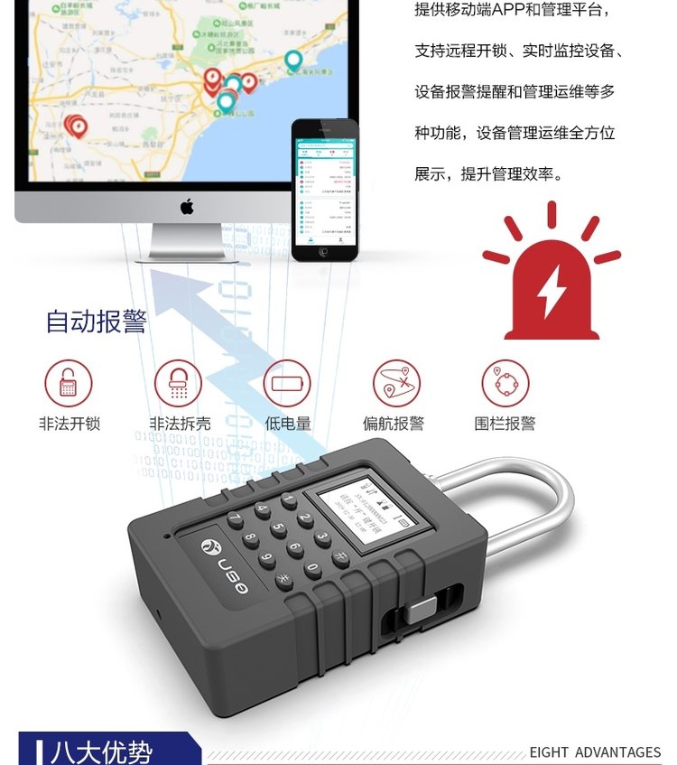 产品特点智能开关锁、全程在线监管、多重安全报警