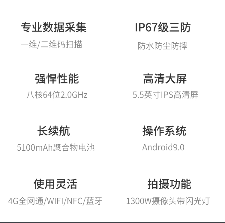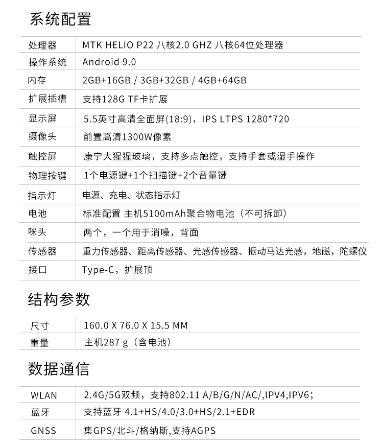物理按键 | 1个电源键 1个扫描键 2个音量键 一个自定义键 | ||