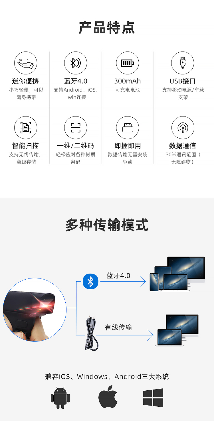 按键 | 1个物理按键实现扫描/开关机 | ||