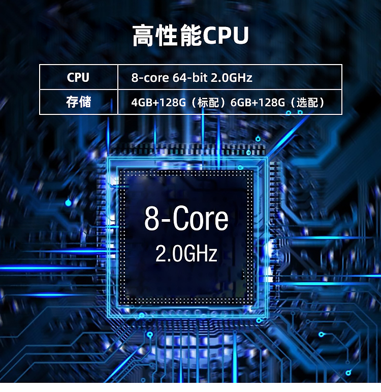 CPU | 八核64 位2.0GHz 高性能处理器 | ||