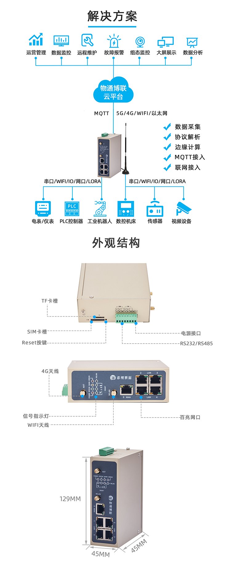 功能 | 数据采集、边缘计算、云端接入等 | ||