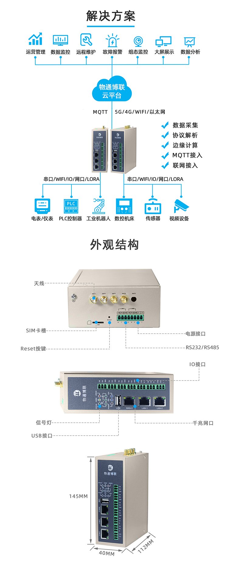 功能 | 5G/4G数据采集、边缘计算、云端接入等 | ||