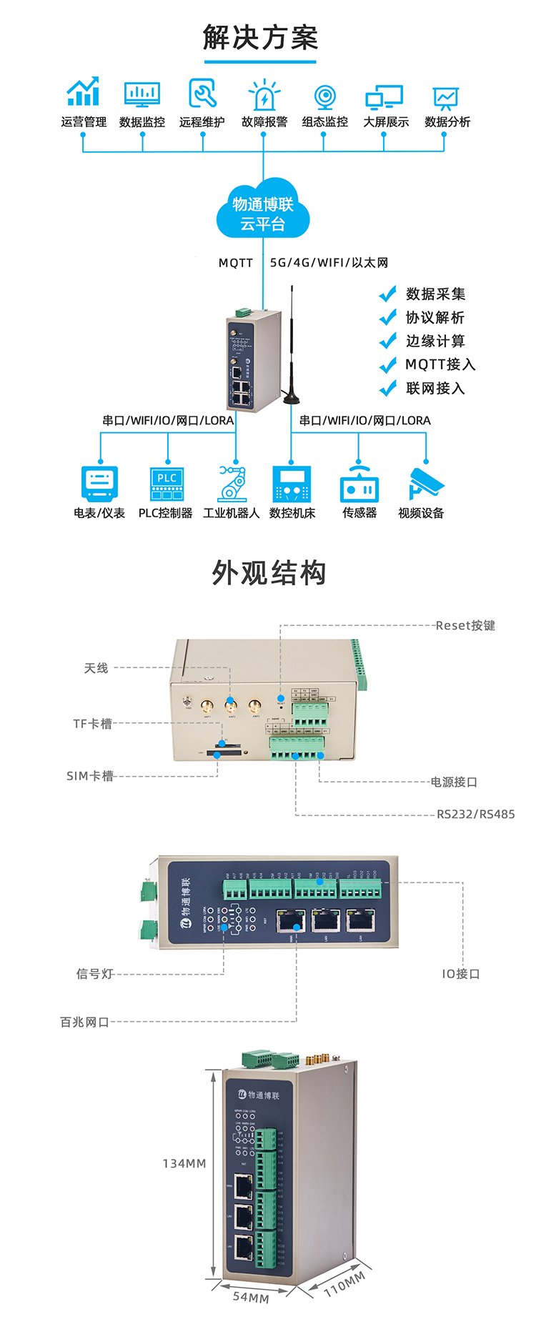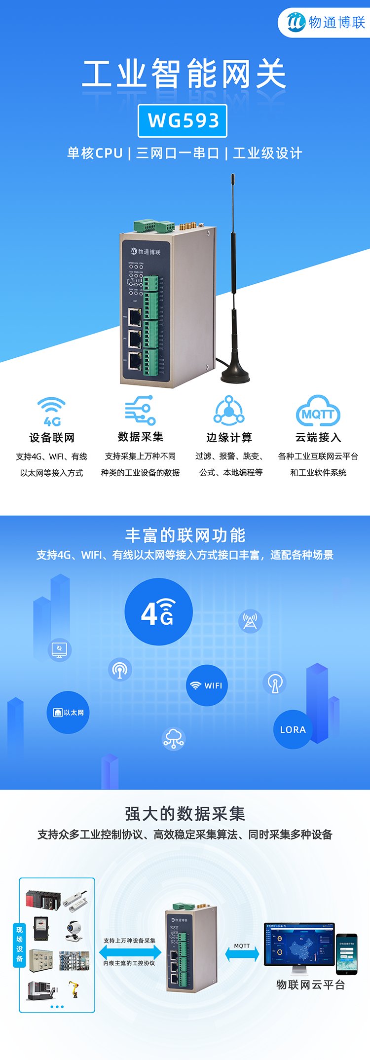 物通博联WG593LORA网关数据采集网关IO数据模拟量数字量采集