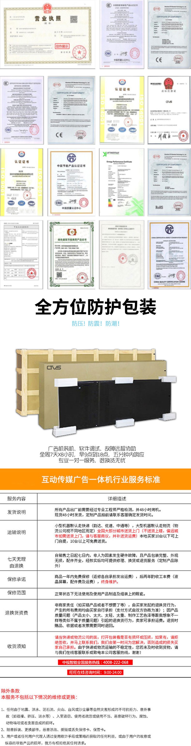 深圳中视智能商显科技有限公司是一家专注于中高端触控触摸一体机研制与生产销售的专业厂家,旗下立式液晶广告机主要有电容触控屏与红外触控屏两种,此款产品便是搭载的电容屏作为触控单元,支持多点触控,显示尺寸为55寸,能够在-20°C~+40°C的环境中实现稳定的运行,操作简便支持定制化生产服务。