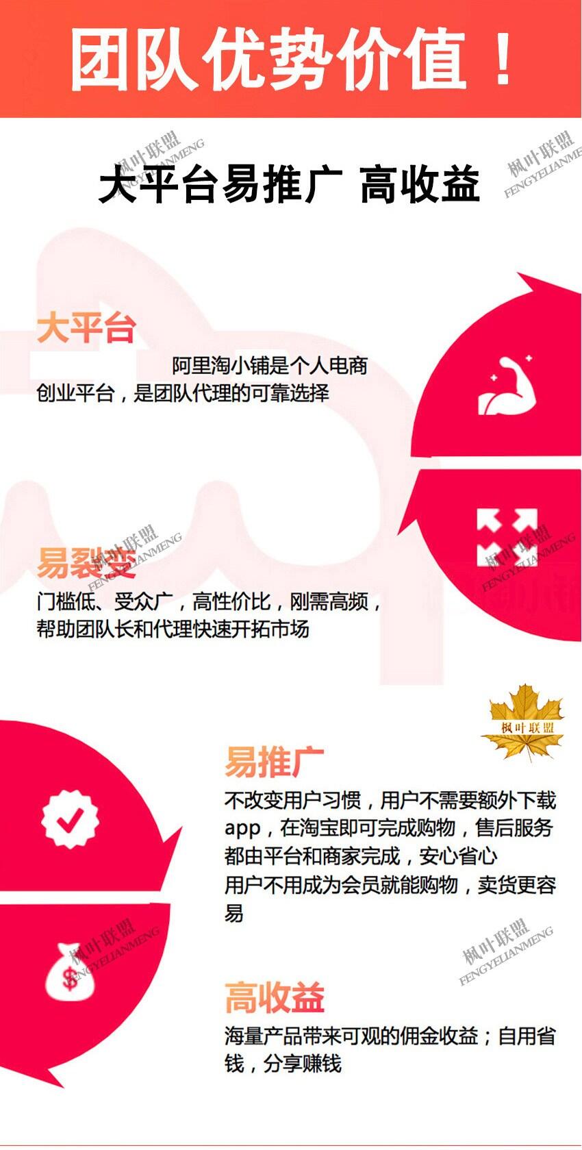 淘小铺核心团队之一淘小铺的万磁引流联盟。有完善引流体系。加入万磁引流联盟好处就是得到这些引流的扶持,最快限度的扩大团队的规模。淘小铺社交电商现在处于发展初期,红利期巨大,谁先抢占客户,谁就取得先机。万磁引流联盟,宗旨是‘帮助草根通过互联网翻身’定位在互联网营销等领域。