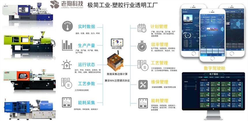老狗科技极简工业注塑机数据采集网关EBOX-DKM,是一款针对注塑机实现数据采集的设备,无需注塑机设备生产商开放协议,只需将采集网关设备与注塑机控制器连接,即可对注塑机进行全量数据无损接入,高性价比,即插即用,兼容100%老旧注塑机及周边设备,可对接本地服务器、云平台、MES、ERP等第三方系统的数据。