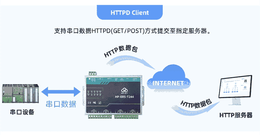 HP-ERS-T244四串口服务器用于实现串口到以太网口的数据的双向透明传输。用户无需关心具体细节,服务器内部完成协议转换。串口一侧实现串口数据的透明传输,以太网口一侧则是TCP/IP数据包,通过简单设置即可**工作细节,四个串口相互独立。可以通过服务器内部的网页进行,也可以通过设置软件进行设置,一次设置永久保存。采用Cortex-M7方案,主频高达400MHz,性能更强,传输速度更快,可靠性更高。搭载深度优化的TCP/IP协议栈。双重看门狗和多种保活机制助力设备稳定运行。支持TCP Client、TCP Server、UDP Client、UDP Server、Httpd Client五种工作模式,简单配置即可实现数据透传功能。