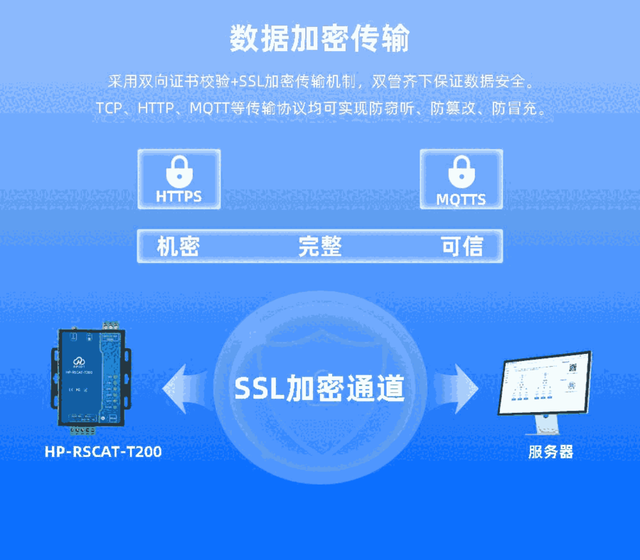 HP-RSCAT-T200支持三大运营商CAT-1网络接入产品采用工业级设计标准,同时支持移动和联通 2G 网络接入;内置独立硬件看门狗,产品采用 RS232 和 RS485 两 种标准端子接口,RS485完全独立电器隔离支持多路SOCKET,同时可连接四个服务器,支持自定义心跳包/S心跳包/1CCD心跳包/1ME1心跳包,支持自定义注册包/SN注册包/ICCID注册包/IMEI注册包,是华普物联网推出的高可靠性、高速率、低延迟的全网通 DTU。