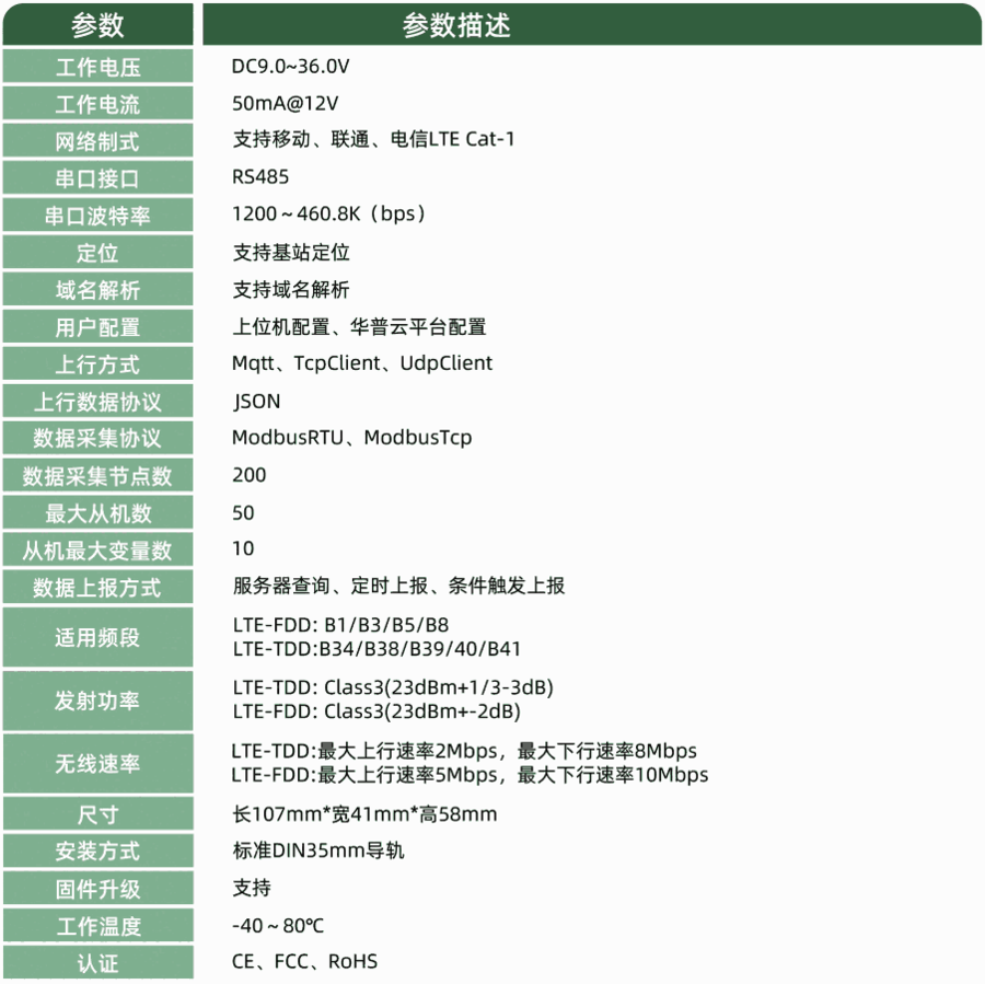 华普物联HP-RSCAT-G100 RS485转CAT1网关