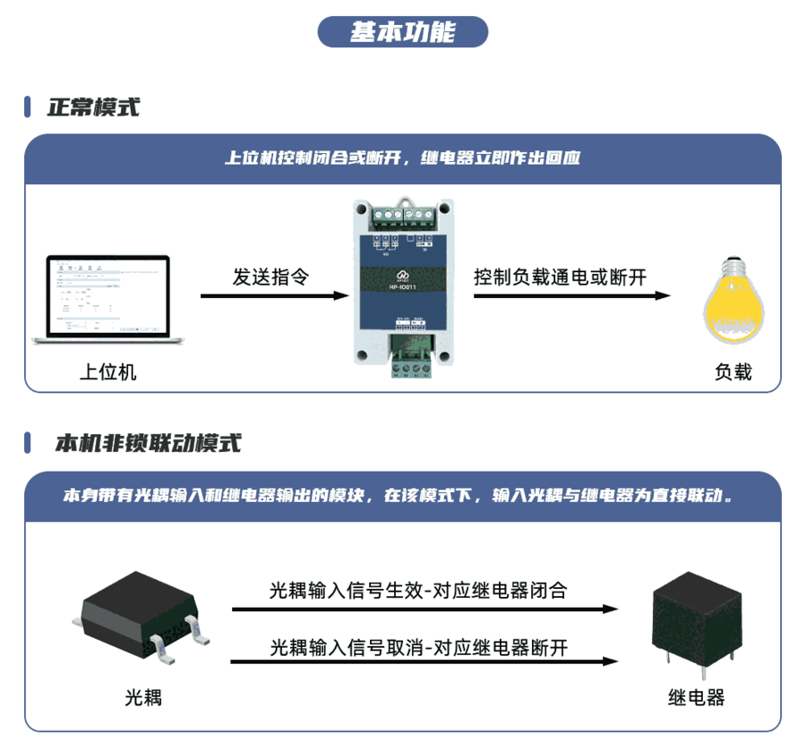 工作模式更改;继电器独立控制;