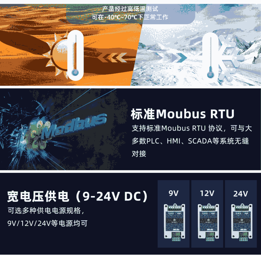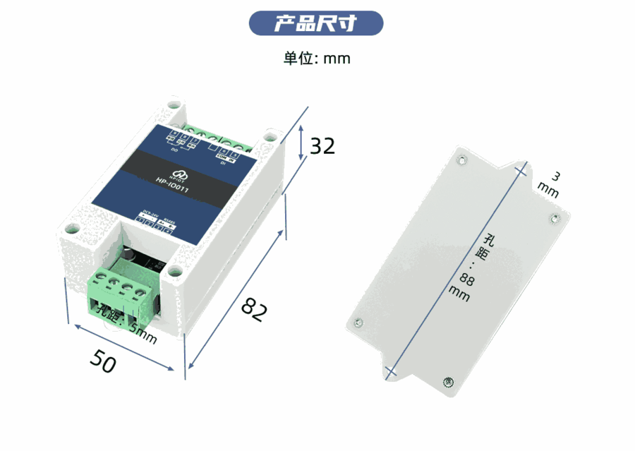 HP-IO011 系列产品是采用标准 Modbus- RTU 协议的继电器设备,支持 RS485/232 或网络通信。HP-IO011 产品具备 1 路 IN 输入接口、1 路继电器输出接口和一路 RS485 接口, 支持宽电压供电,多路输入输出控制,可广泛应用于工业生产、农业、智慧城市、写字楼等各类 应用场景。