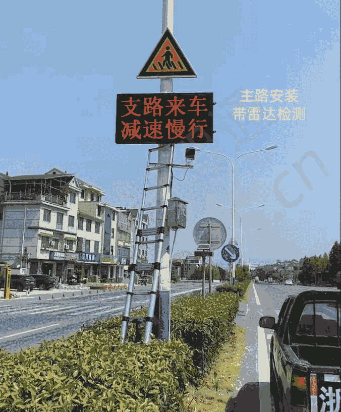 一直支路来车安全预警系统,行人过街安全预警屏。