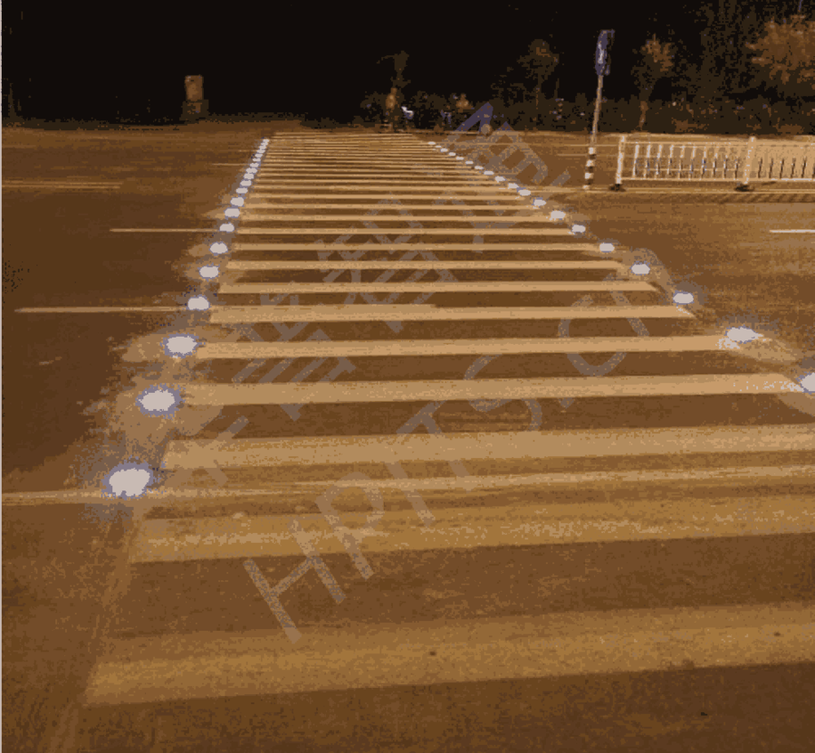 一种有线控制型,同步发光智慧斑马线道钉。高亮,可视距离>500米。