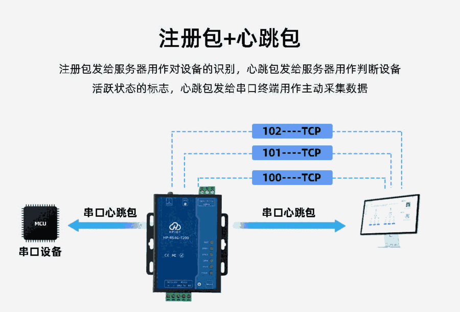 采用工业级设计标准,内置独立硬件看门狗,RS485完全独立电器隔离,支持多路SOCKET,同时可连接四个服务器,支持自定义心跳包/SN心跳包/1CCID心跳包/ME心跳包,支持自定义注册包/SN注册包/ICCID注册包/IMEI注册包。